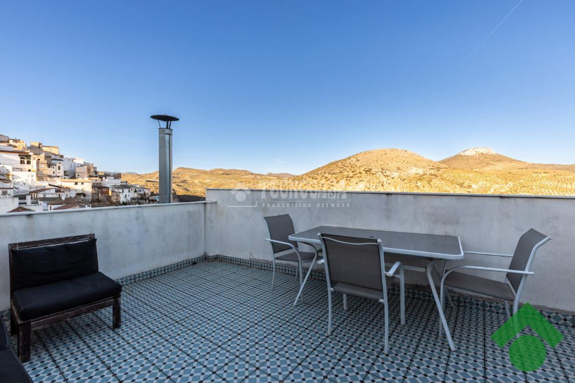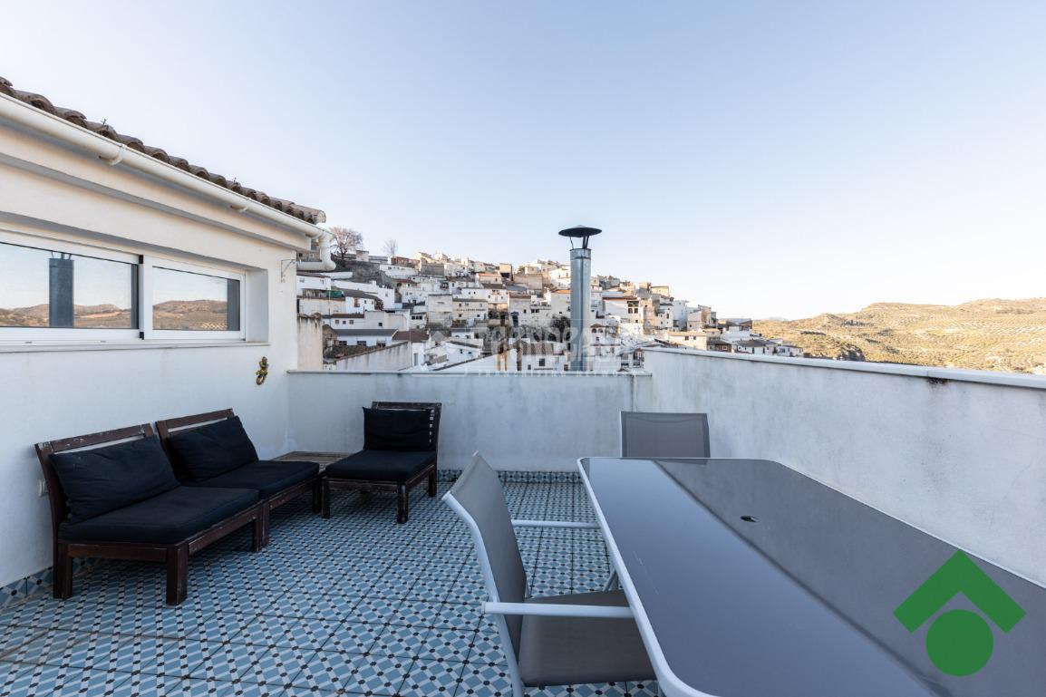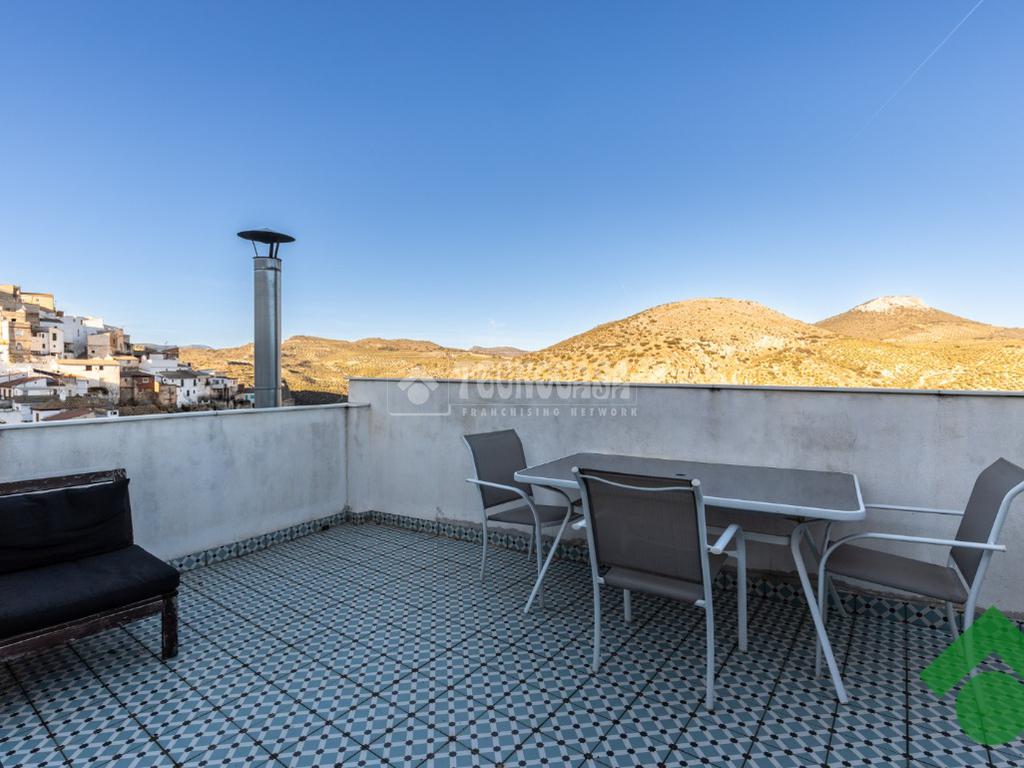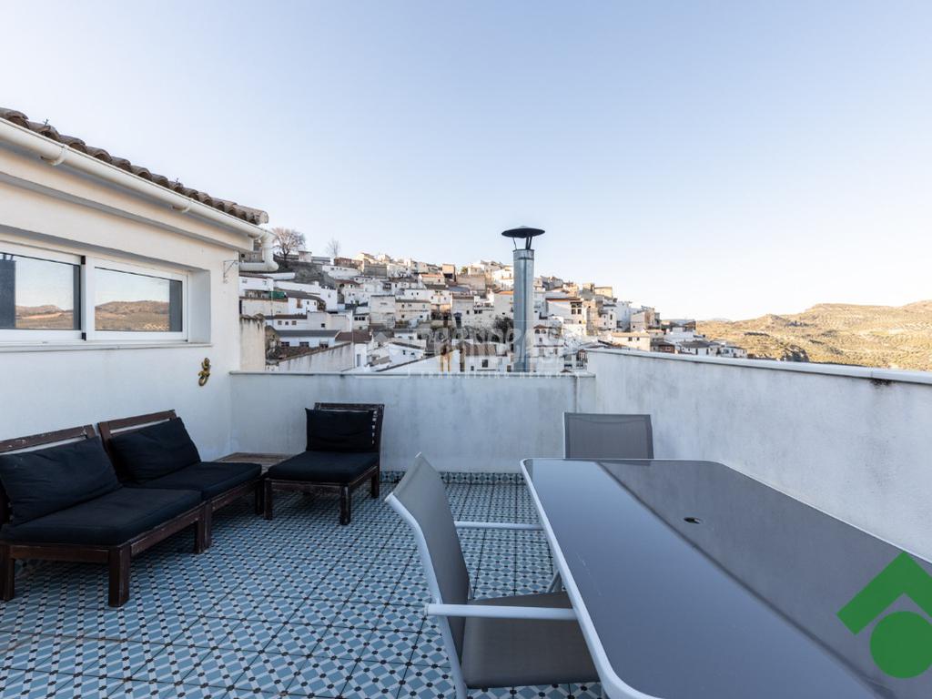 La planta media cuenta con dos dormitorios, un baño completo y una práctica zona de almacenaje, perfecta para mantener el orden en el hogar. En la tercera planta, encontrarás un dormitorio con balcón, un vestidor y arriba una pequeña oficina de trabajo, ideal para quienes buscan un espacio de concentración. Además, la terraza ofrece vistas espectaculares del pueblo y es el lugar perfecto para disfrutar del sol.